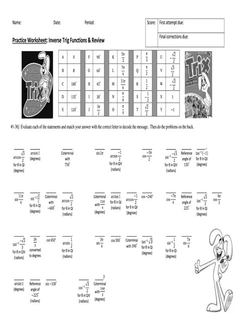 5.7.1 integrate functions resulting in inverse trigonometric functions. Web solve trigonometric equations each pdf worksheet consists of eight unique trig equations. Isolate the variable 'x' and apply the inverse trig relationship to solve each equation.