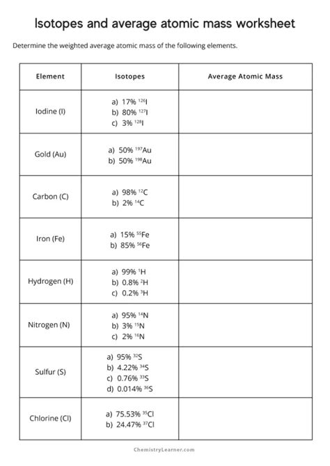 Calculate the average atomic mass of chlorine if its. Web calculate the average atomic mass for each element based on the natural abundance of its isotopes. Web isotopes and average atomic mass, as concepts, allow for the specific discussion of elements and their atoms, and this quiz/worksheet combo will help you test your.